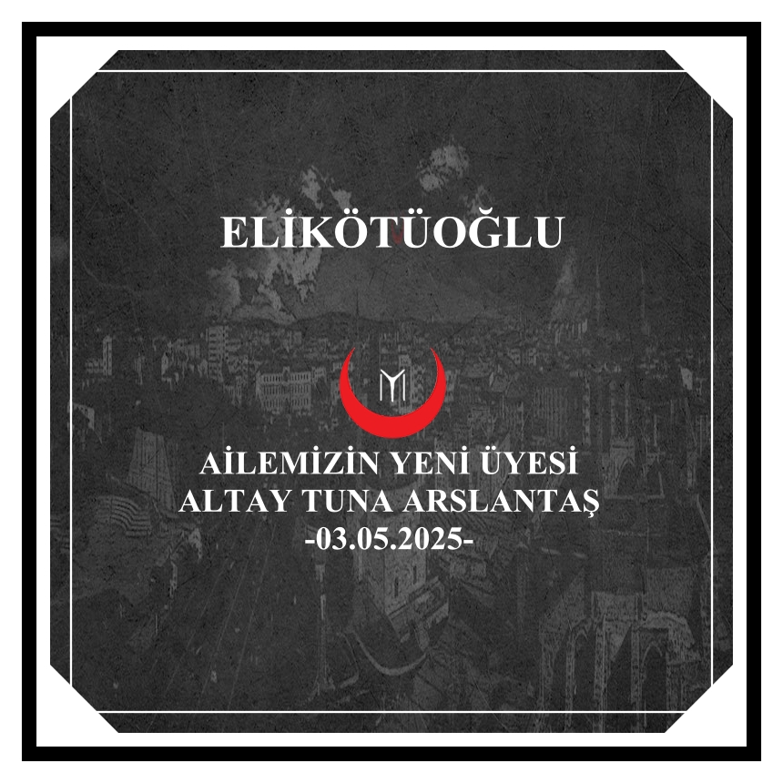Ailemizin Kangal Etyemez Köyü Kolundan, Danışma Kurulu Üyemiz Ali Rıza ARSLANTAŞ‘ın Oğlu A.Kaan ARSLANTAŞ‘ın 03.05.2025 Tarihinde Kocaeli’de Erkek Çocuğu Dünyaya Gelmiştir. Aramıza Yeni Katılan Altay Tuna ARSLANTAŞ‘ın Vatanımıza, Milletimize ve Ailemize Hayırlı, Uğurlu Bir Evlat Olmasını Yüce Allah’tan Niyaz Eder; Üyemiz A. Kaan ARSLANTAŞ’ı Tebrik Ederiz.